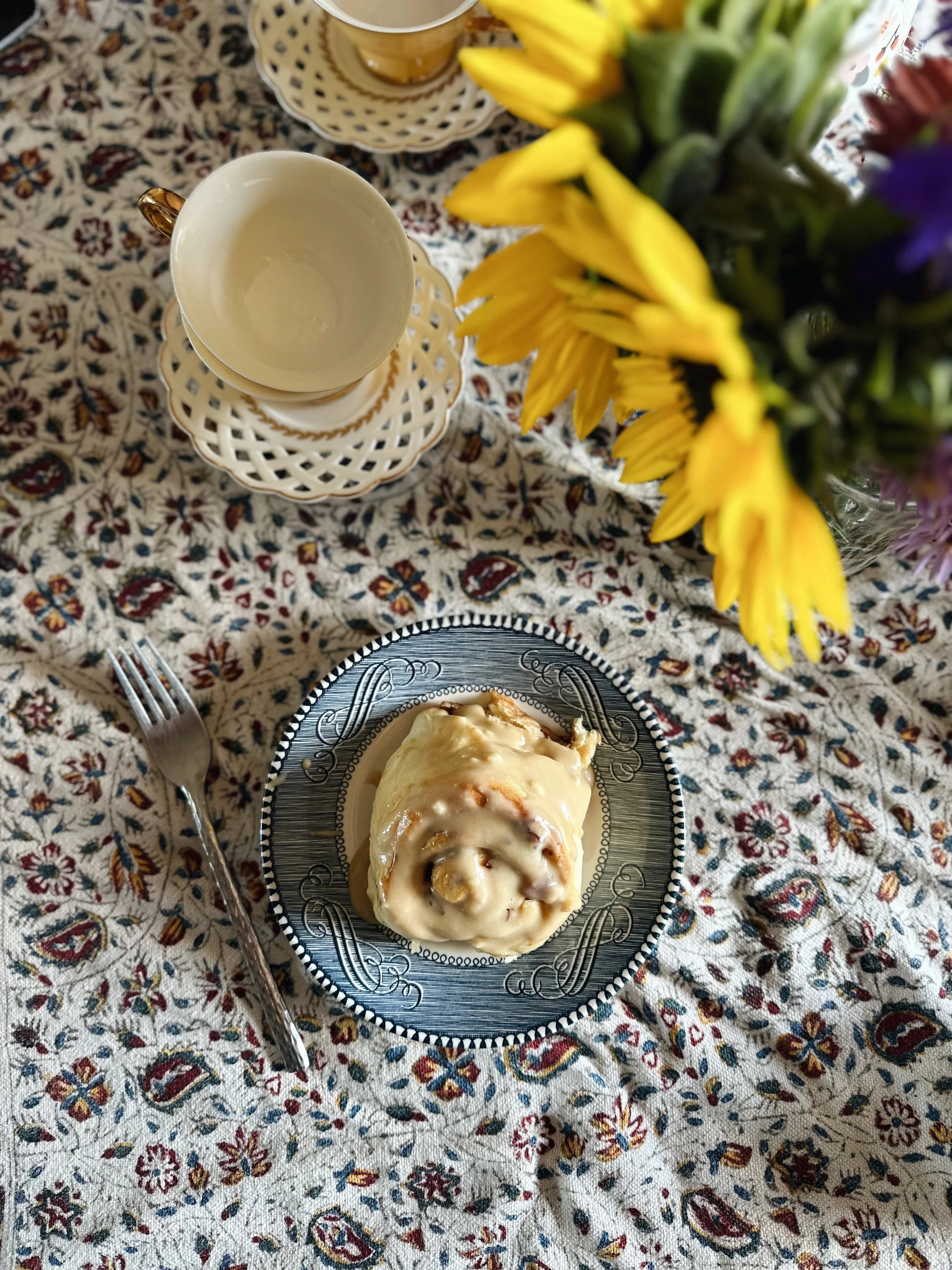 Bake your rolls in the oven for 12 minutes. I check mine at about 10 minutes to be sure they aren’t going to over cook. Because no one likes an overcooked cinnamon roll!